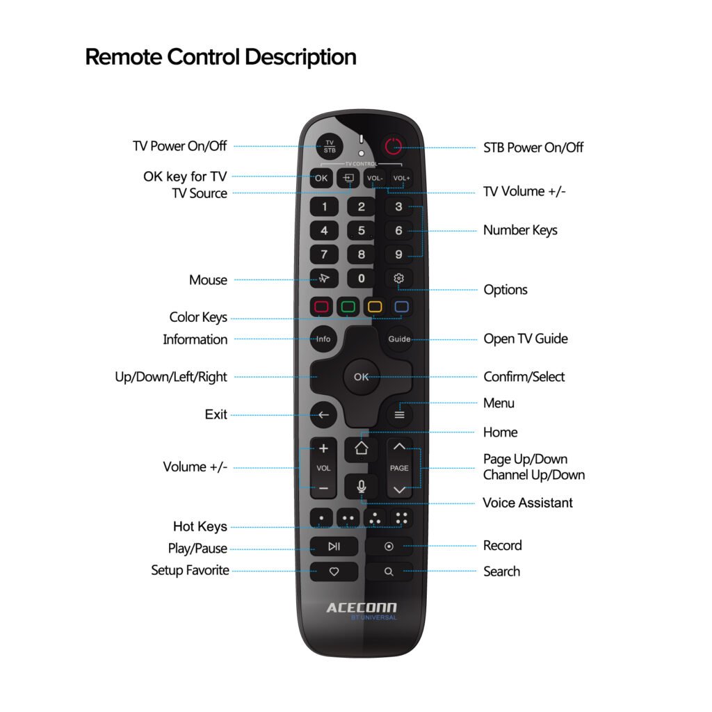 3. Equipped with Bluetooth remote control with voice search and other functions.
