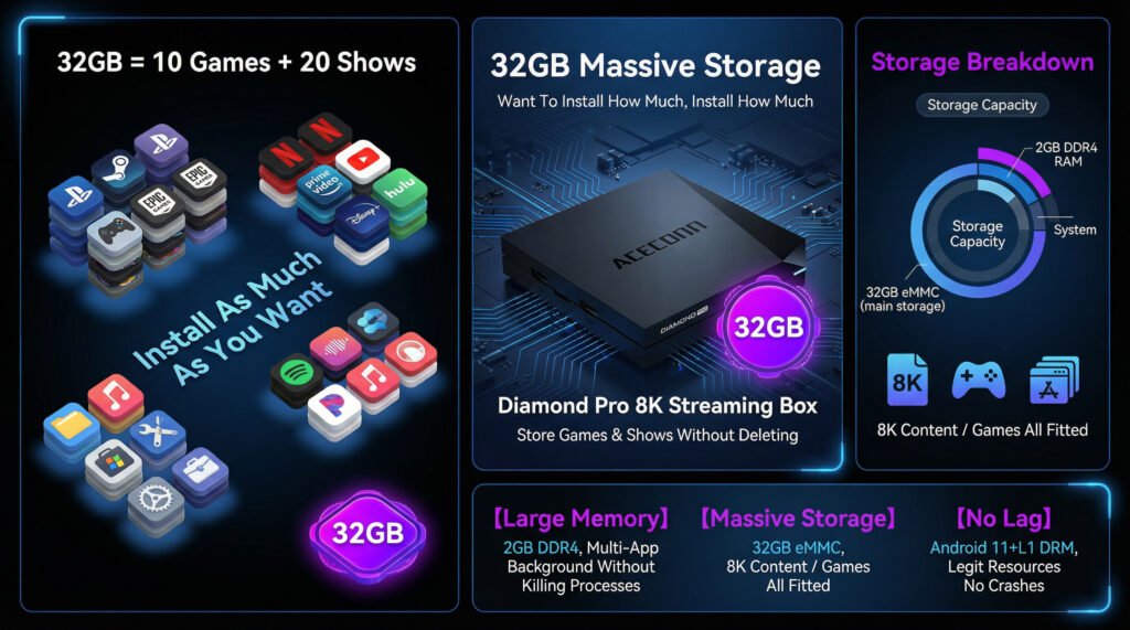 High-Performance Hardware: 2GB DDR4 RAM and 32GB eMMC storage ensure incredibly smooth operation, faster app launches, and plenty of space for your favorite content.